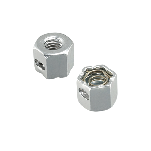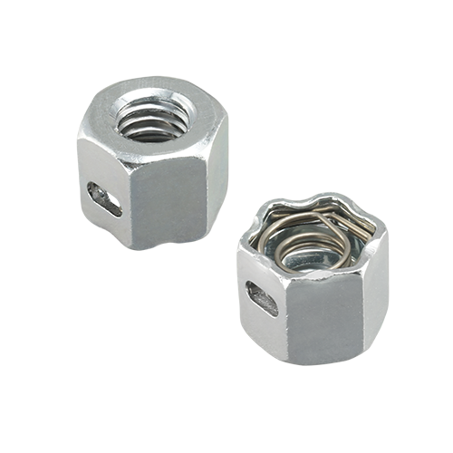 取り付けされた状態では緩みませんが、いざ取り外しをする際には『ばねの緊縮』が緩和され、一般治具でも容易に外せる機能を持つ施工性にも優れた緩み止めナットです。
